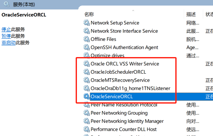 OracleServiceORCL:数据库实例,必须打开。 OracleOraDb11g_home1TNSListener:监听器服务,用来给第三方工具提供连接。 其他的服务可以关闭掉。